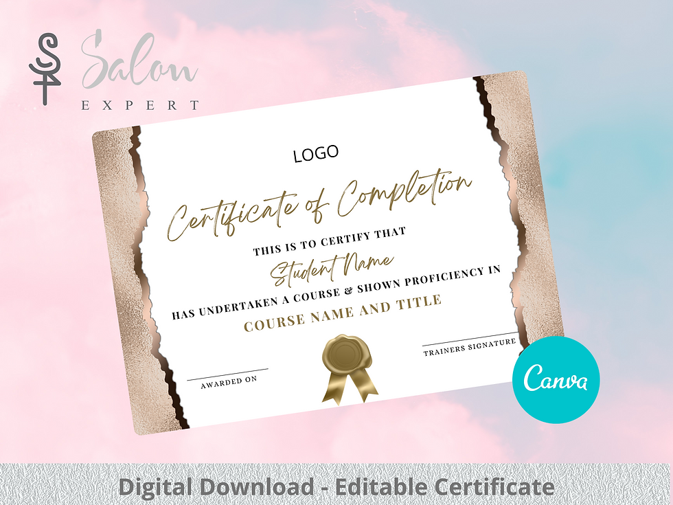 Salon Expert set about to create a variety of stunning and unique certificate of award templates that are fully editable in Canva. You won't need to have a pro account, just a basic Canva account will do, and you will be able to access, edit and print your training academy certificates in minutes!